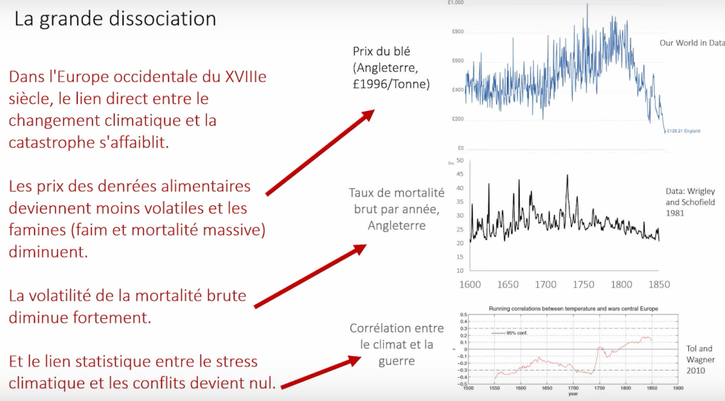 Mais il y a aussi des raisons d’espérer que le lien de causalité entre les stress climatiques et les crises s’affaiblissent à l’époque moderne. La raison de cet affaiblissement est la même que celle de la croissance moderne : l’apprentissage prométhéen sous la forme de meilleures technologies et d’une plus grande capacité collective à résoudre les problèmes.