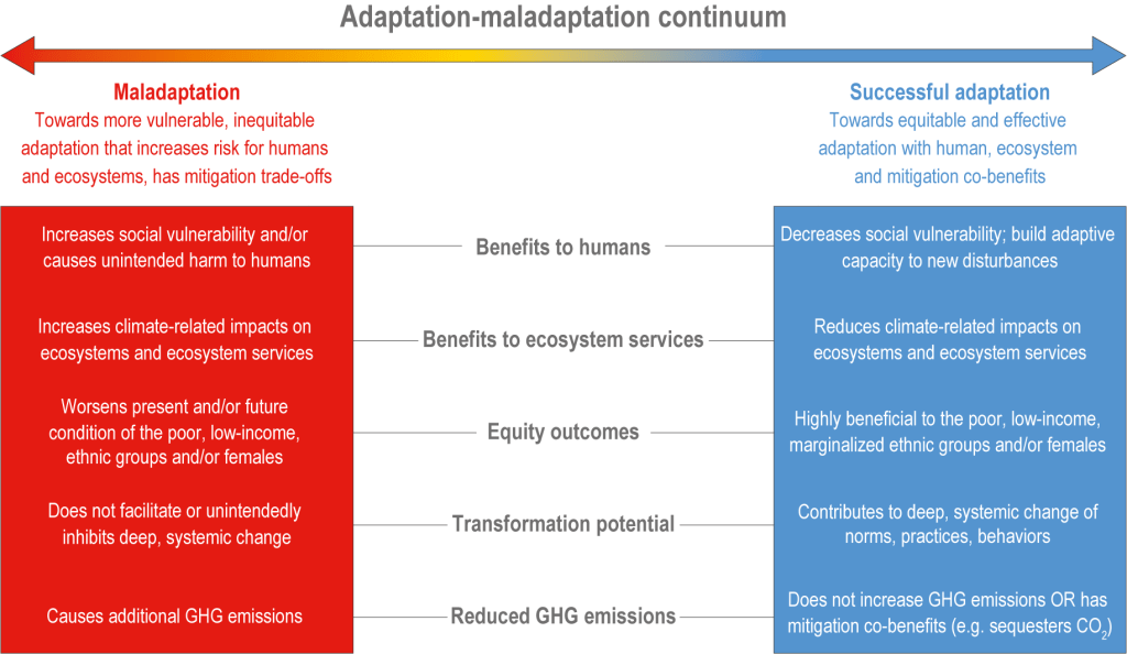 Le GIEC a mis en lumière cette notion dans son dernier rapport (volet n°2, chapitre 17), en parlant « de preuves grandissantes de maladaptation dans de nombreux secteurs et régions du monde ».