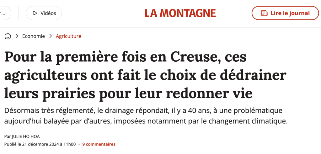 « Dédrainage : le mot n’existe pas dans le dictionnaire. C’est dire comme il vient bousculer les habitudes ». C’est ce qu’écrit le journal La Montagne dans un long reportage paru fin 2024, dédié à un projet de dédrainage de parcelles agricoles « jamais vu sans doute » a minima dans le Limousin.