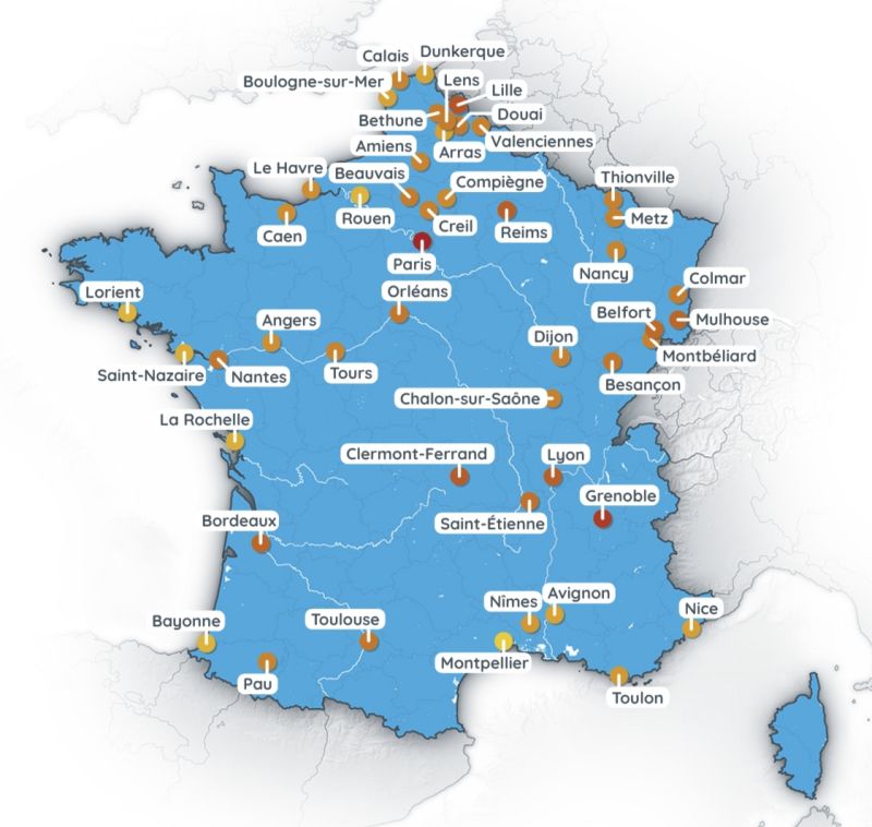 Source : carte Ouest-France, sur la base d’un rapport de septembre 2025 de l’association Conséquences avec la startup Callendar.