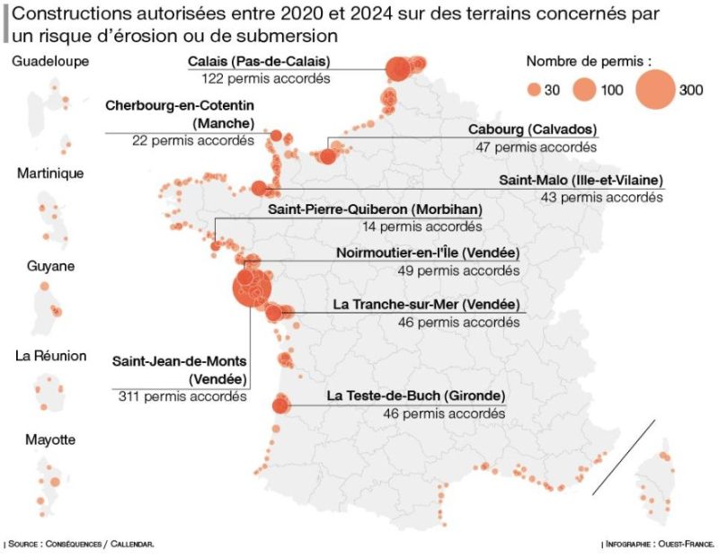 La carte de France des autorisations de construction en zone littorale à risque
